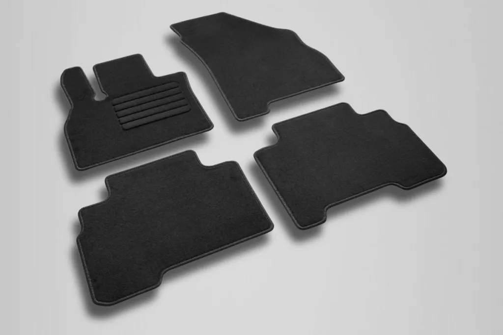Materiál koberca je látková textília. Materiál látkovej rohože je dokonale prispôsobený účelu, chráni podlahu interiéru auta, znižuje hluk v kabíne pri jazde, dodáva pekný vzhľad a interiér pôsobí útulnejšie a teplejšie.