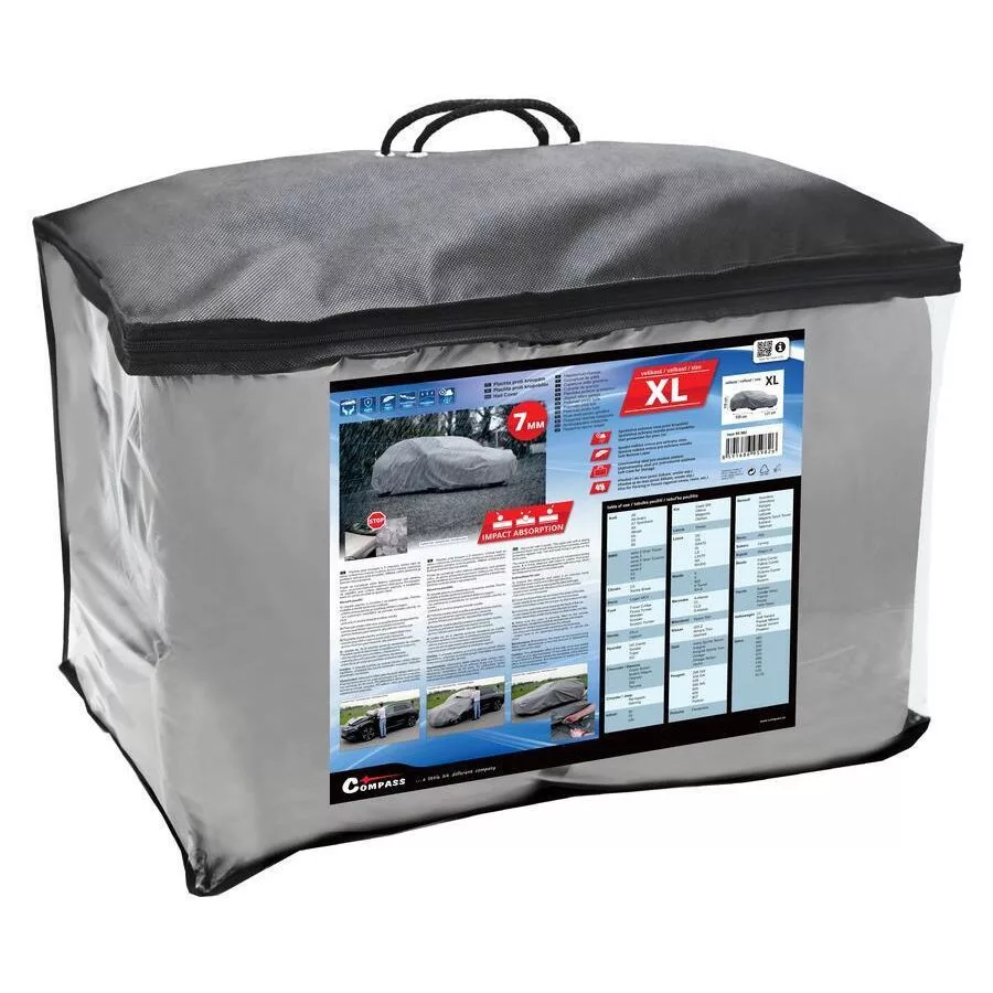 Plachta je veľmi robustná a spoľahlivo chráni auto aj pred ťažkými padajúcimi predmetmi ako sú krúpy alebo vetvy počas vychrica. Vďaka pružným lemom a trom páskam spoľahlivo drží na ľubovoľnom type karosérie. Napriek tomu, že je povrch vodeodolný, plachta je priedušná a karoséria pod ňou nekoroduje.