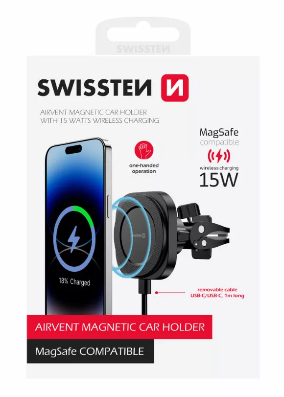 Držiak na telefón Swissten MagSafe s bezdrôtovou nabíjačkou, držiak na ventiláciu