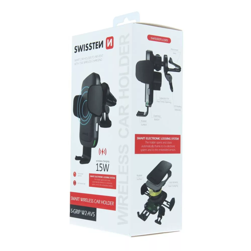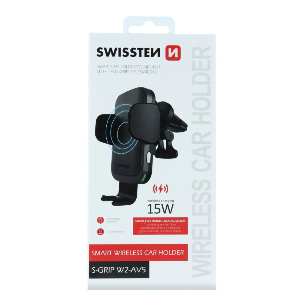 Držiak telefónu Swissten S-Grip W2-AV5 s bezdrôtovou nabíjačkou, pre ventilačnú mriežku