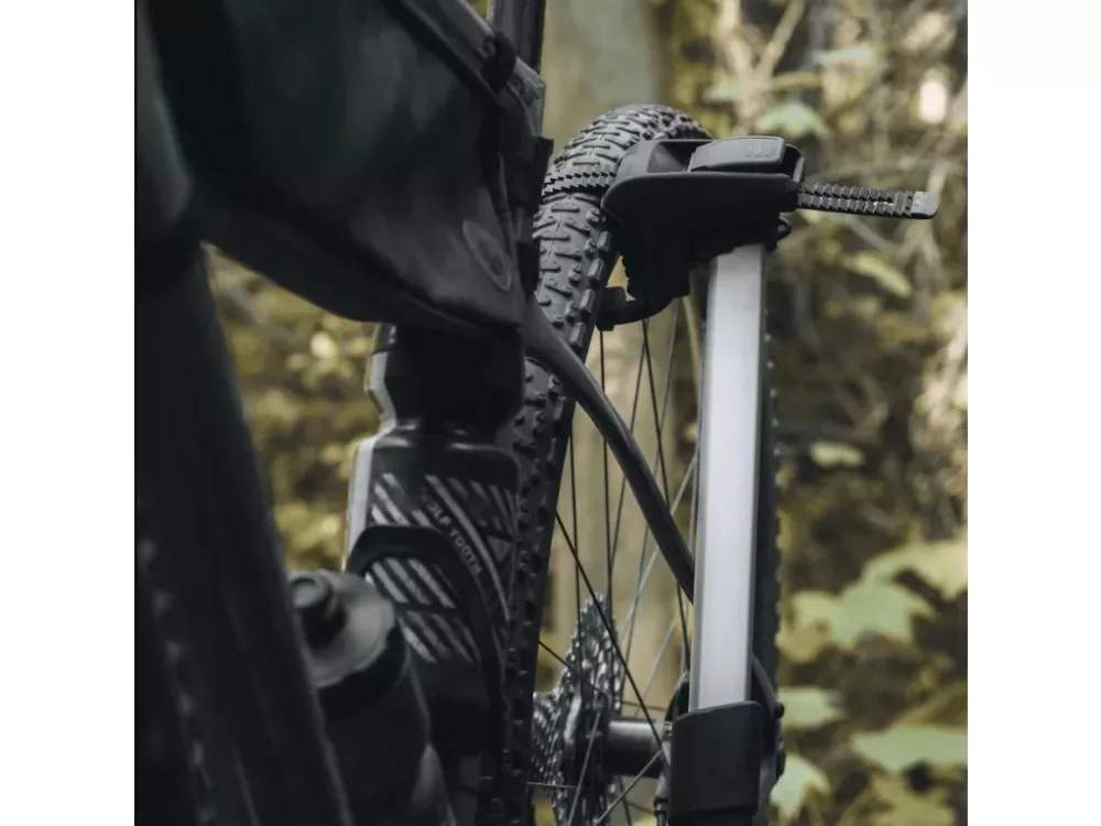 Druhou funkciou je to, že po vyklopení nosiča, je možné upevniť koleso do teleskopického ramena a tým premeníte nosič na servisný držiak s odkladacím priestorom (je potrebné dokúpiť prídavný držiak).