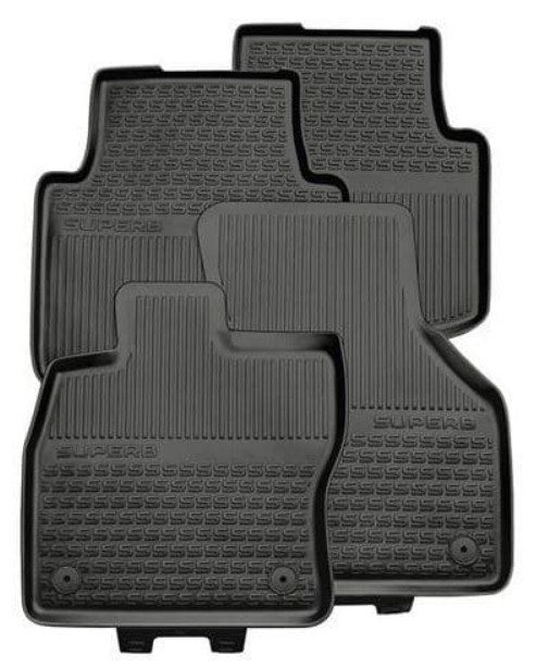 ŠKODA SUPERB III. (3V) Gumové rohožé je dokonalým doplnkom do interiéru vášho auta a poskytuje ochranu pred nečistotami a opotrebovaním. Gumové rohožé rozmermi presne zodpovedá podlahe auta, takže dokonale chráni pred nečistotami, dažďom a inými nečistotami, ktoré sa môžu ľahko dostať do interiéru vášho auta. Konštrukcia spodnej časti koberca zabraňuje jeho šmýkaniu, takže pri používaní vždy pevne drží na svojom mieste.