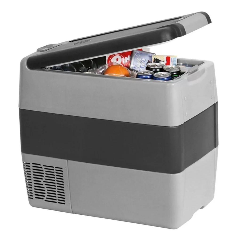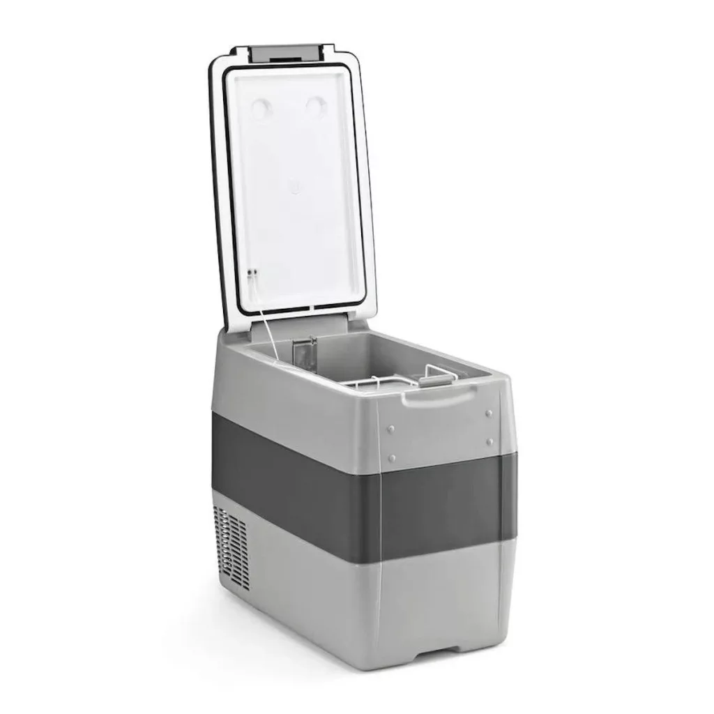Chladnička Indel B TB51 s kompresorom má objem 47l. Napájanie autochladničky je možné pomocou zásuvky autozapaľovača (12/24V).
